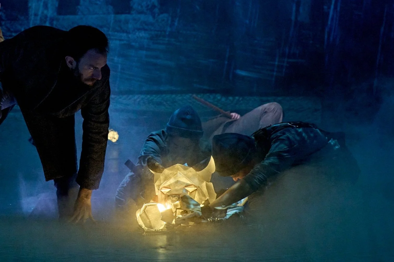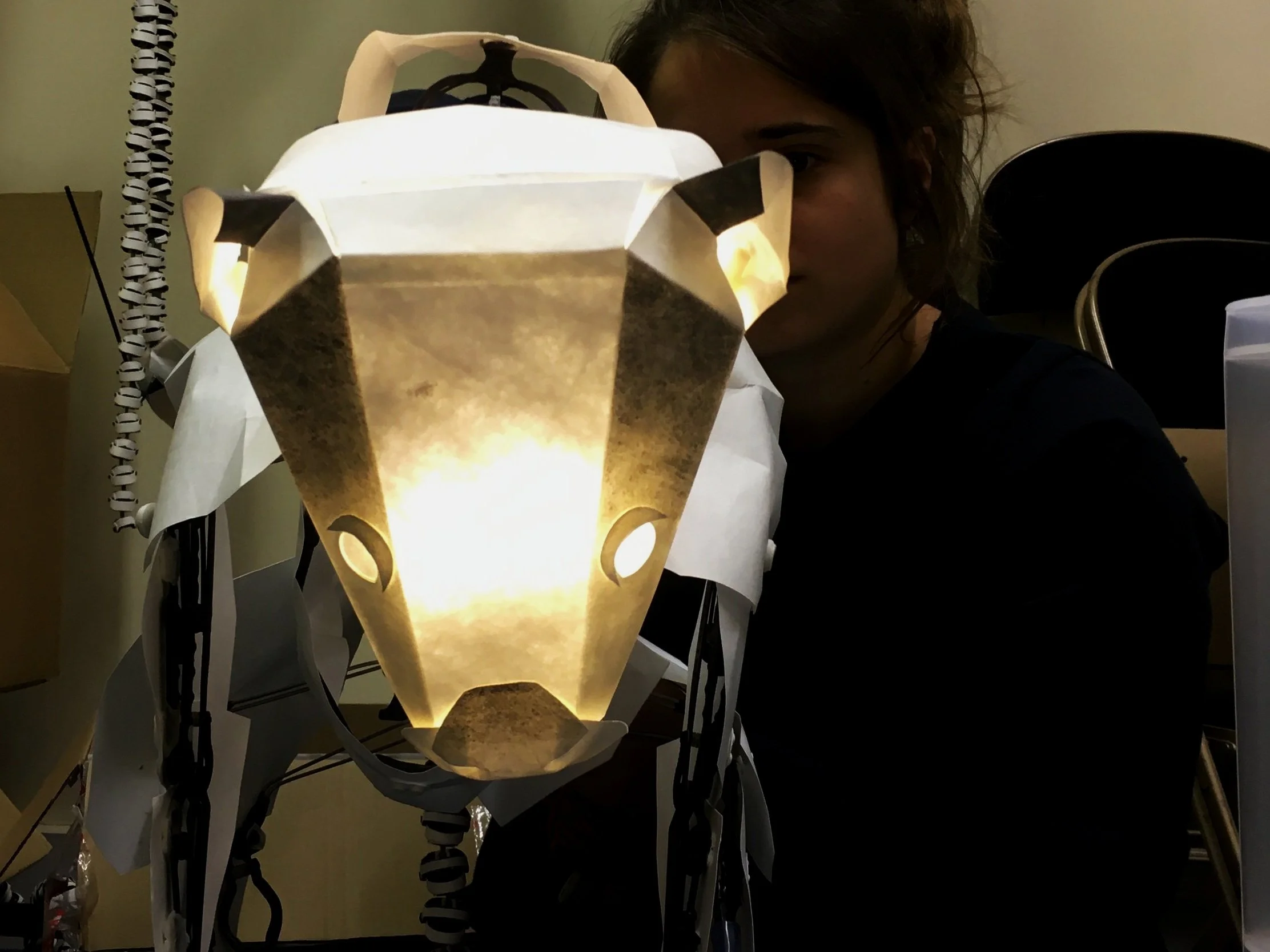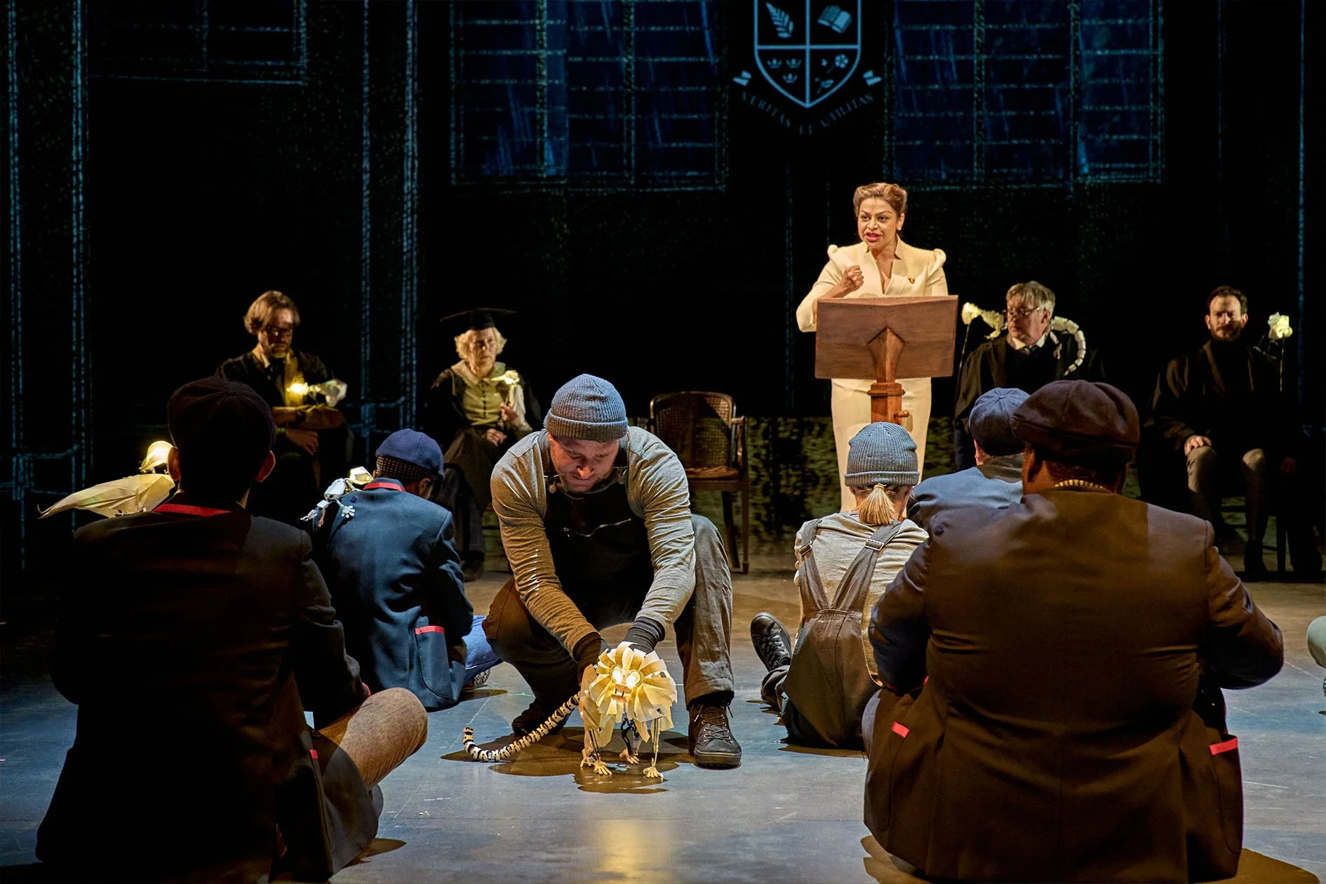 The Book of Dust- La belle Savage was a production at The Bridge Theatre 2022. It was based on the book by Philip Pullman and directed by Nick Hytner. The deamons were represented through puppetry and I worked with puppetry director Barnaby Dixon, producer Glenn Holberton and graduates from Bournmouth Arts University on the design, fabrication and maintenance of 36 puppets. The design language was inspired by the craft of origami and we lit them from the inside to represent their soul like quality.